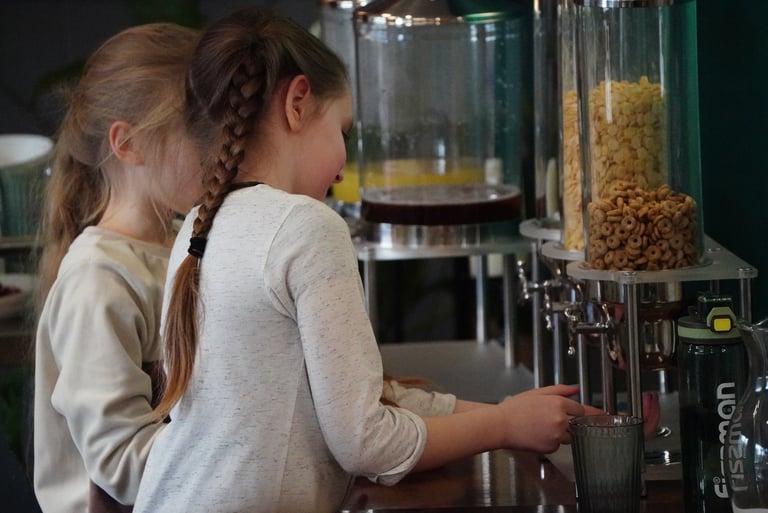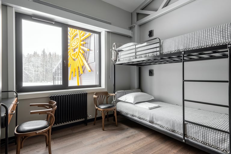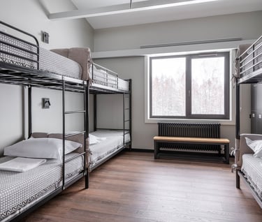 Проживание: в комфортабельных номерах на 4-7 человек - новые удобные латексные матрасы, качественное постельное белье и полотенца, каждое спальное место оборудовано индивидуальным освещением с зарядкой USB. Все номера оборудованы вентиляцией, москитными сетками , имеется несколько туалетов и душевых, запирающийся личный шкафчик, комната отдыха и столовая, благоустроенный двор с игровой площадкой для детей и молодежи разного возраста и физической подготовки, большой пруд с чистой водой, четыре высококачественных песчаных волейбольных/футбольных поля с крытыми трибунами, лес и озеро в 100 м от лагеря. В случае непогоды возможность проводить время в сухой и проветриваемом помещении, а не только под навесом. Все туалеты со встроенным биде, с теплой водой, что повышает уровень гигиены. На первом этаже есть общая стиральная машина, в которой при необходимости можно постирать вещи ребенка.